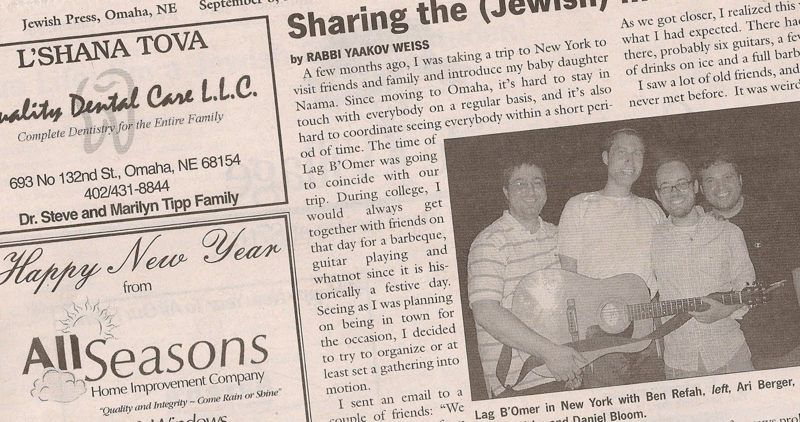 Shanah Tovah to all. As we are preparing for Rosh Hashanah here in Omaha, the Omaha Jewish Press decided to expose some RRRR to the community. I hope the RRRR chevra will followup on these articles by coming to visit in person (either incognito or as an emissary).